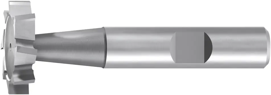 HSS-Schlitzfräser, DIN 850/ 6888, mit seitlicher Mitnahmefläche zum Fräsen von Scheibenfedernuten mit Toleranz P9 in fast allen Werkstoffen.